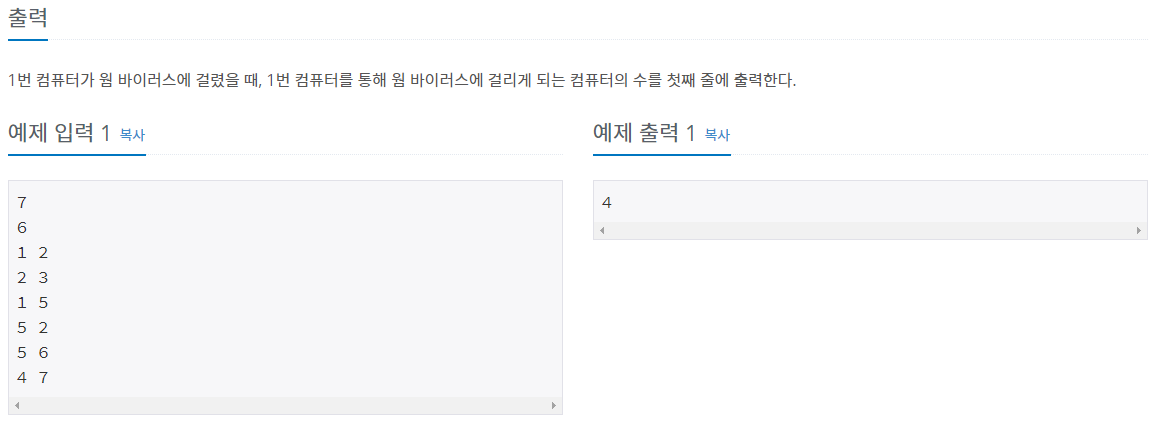 int m = sc.nextInt(); // 네트워크 상에 연결되어 있는 컴퓨터 쌍의 수 즉, 간선의 수