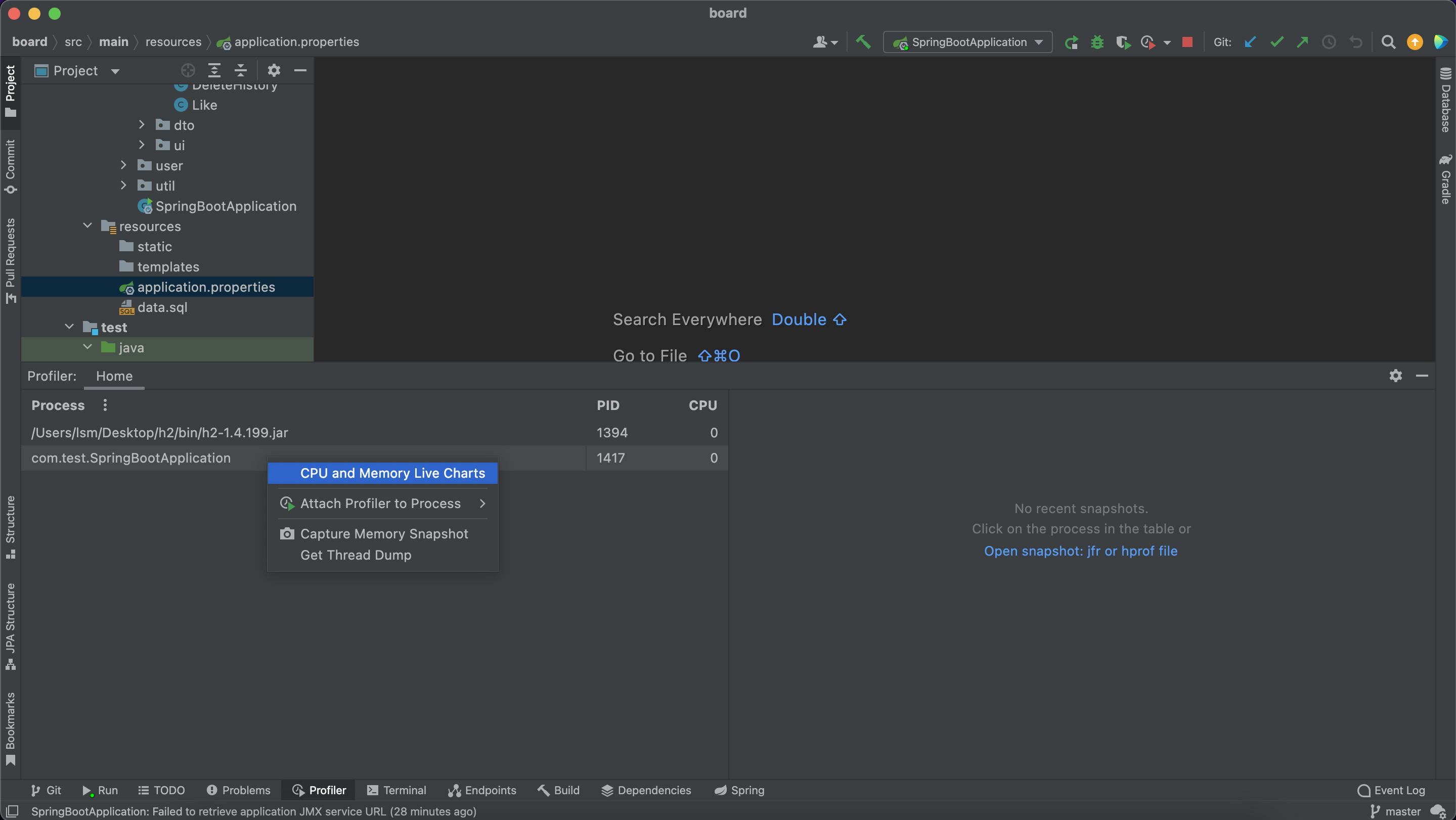 인텔리제이 프로파일러 실시간 확인