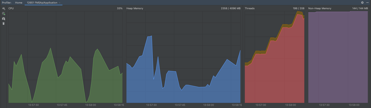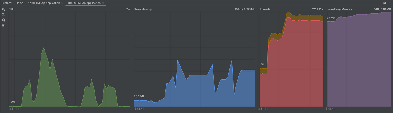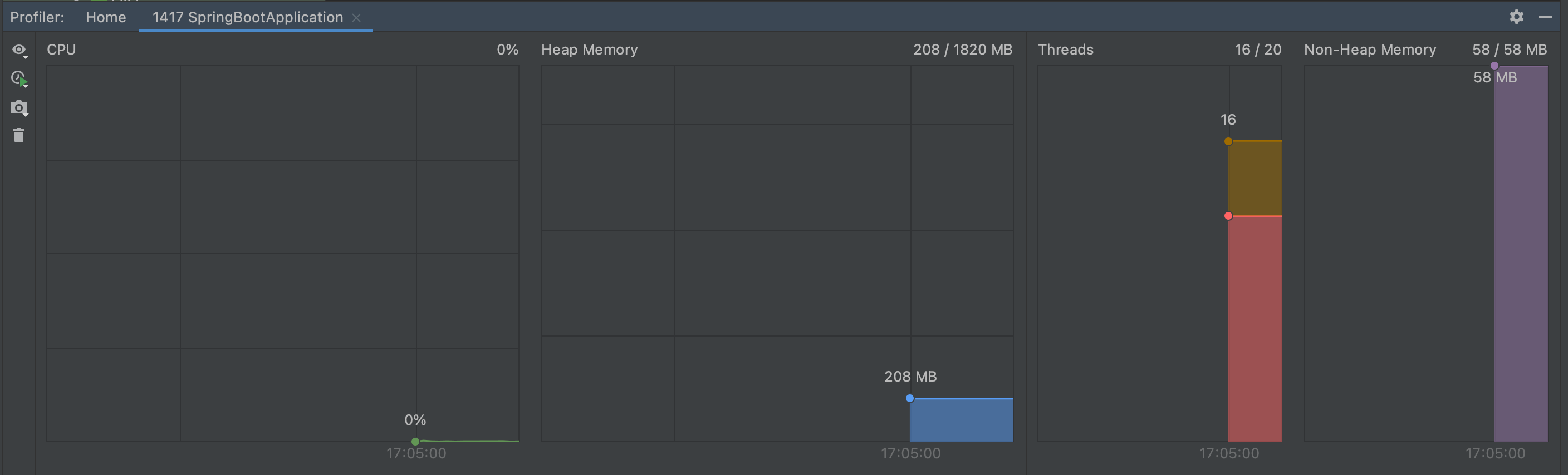 3. 실시간으로 cpu,heap memory, threads, non-heap memory를 확인합니다.