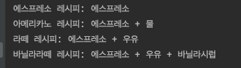 까페 레시피를 프린트하는 프로그램을 만들어 보겠습니다.
