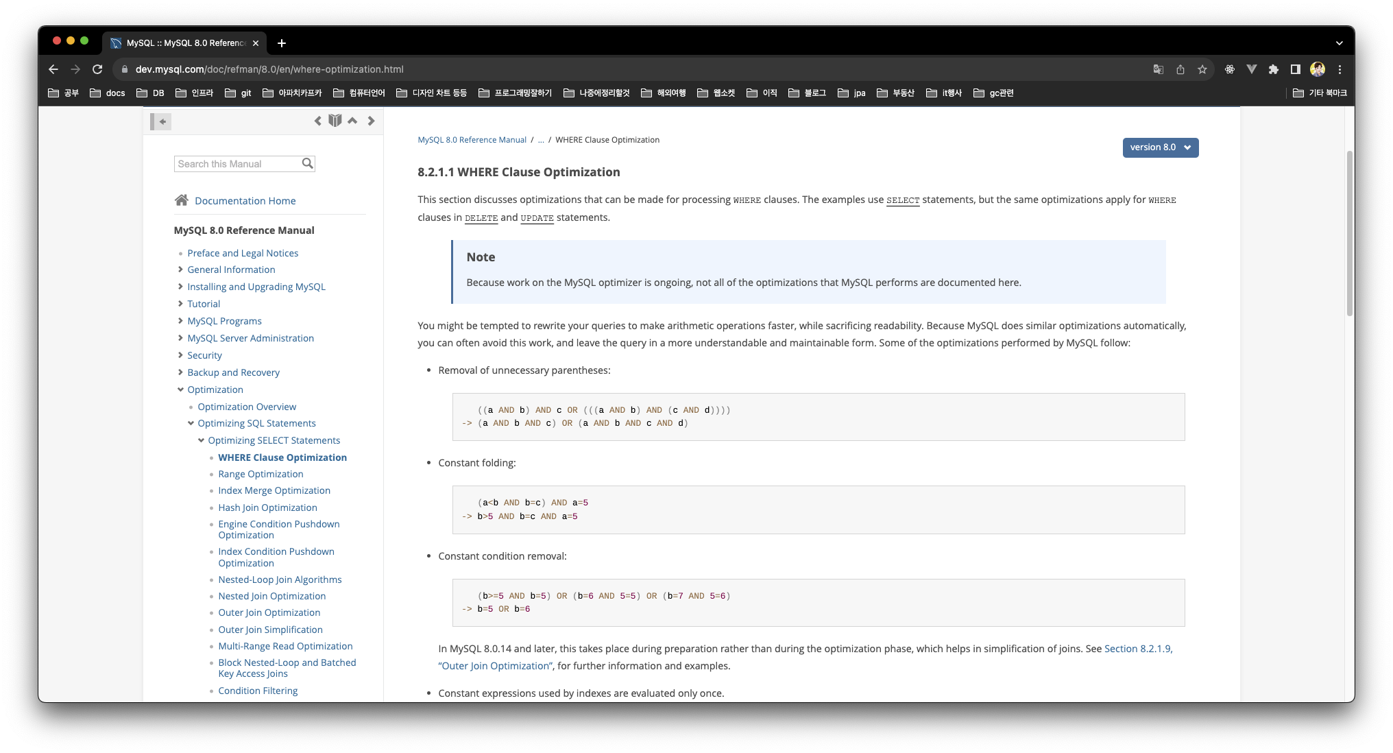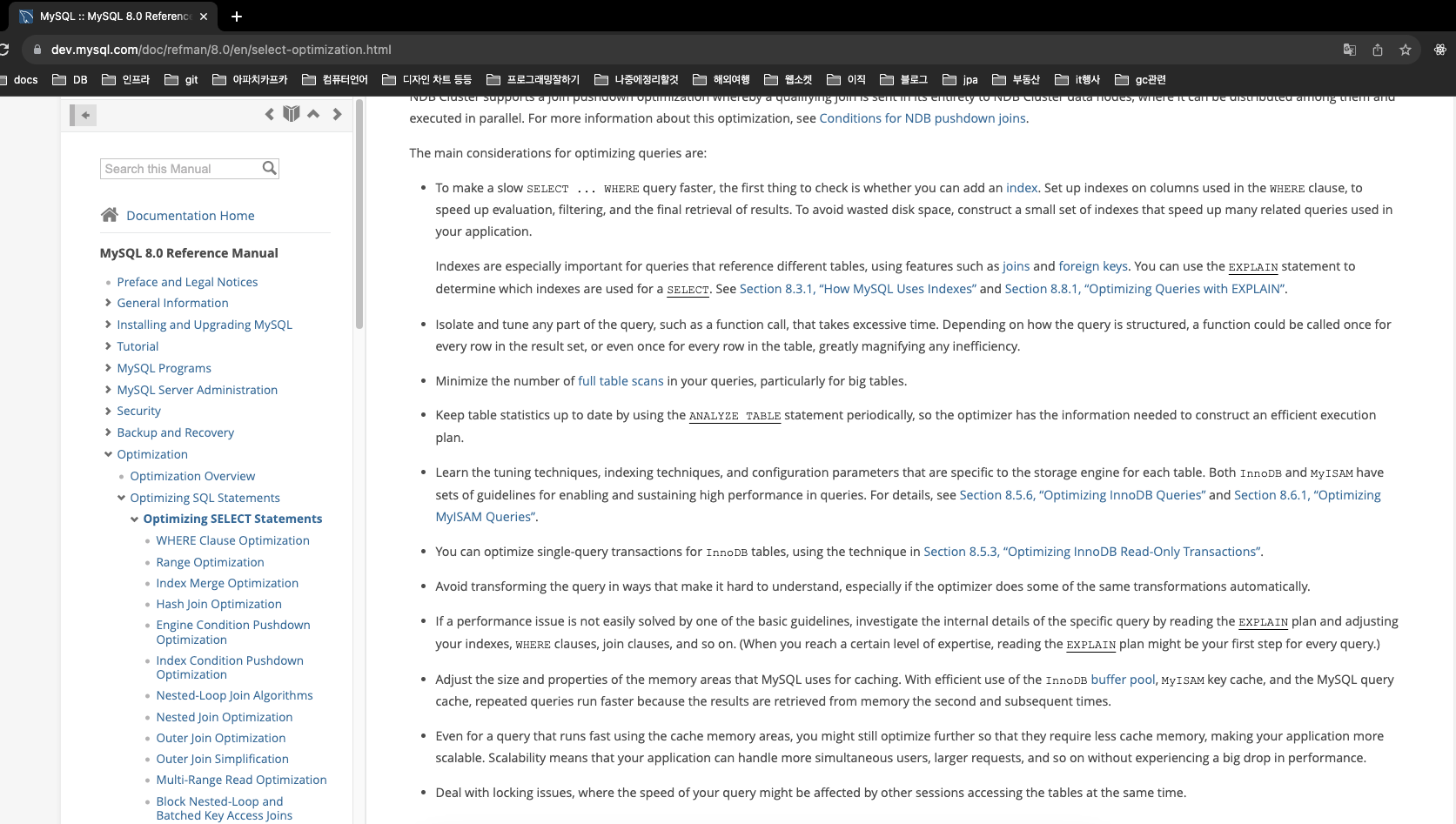 mysql docs에서는 쿼리 최적화에 대한 고려 사항을 꽤나 디테일하게 알려 준다.