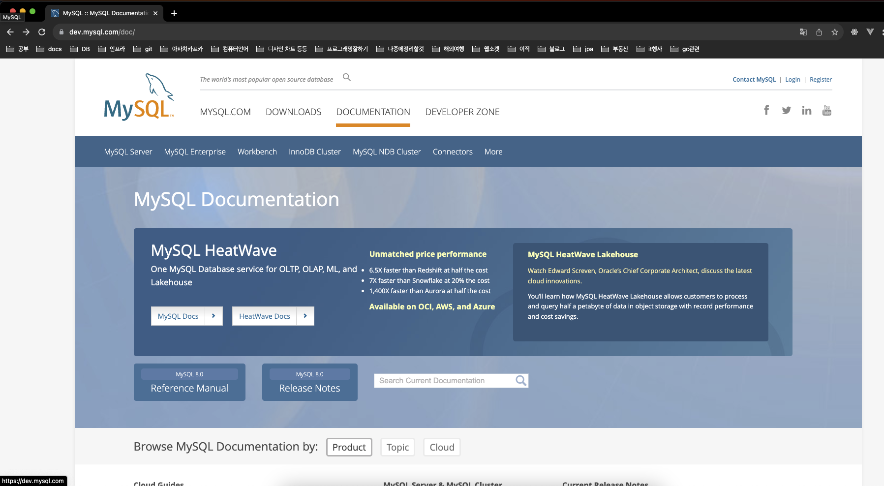 dev.mysql.com으로 접속하면 Reference Manual 로 접속한다.