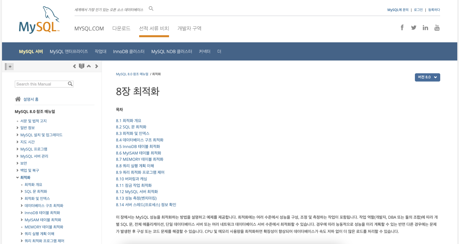 이번엔 Mysql Docs에서 최적화 부분을 아주 잠깐 동안 살펴 보았다.