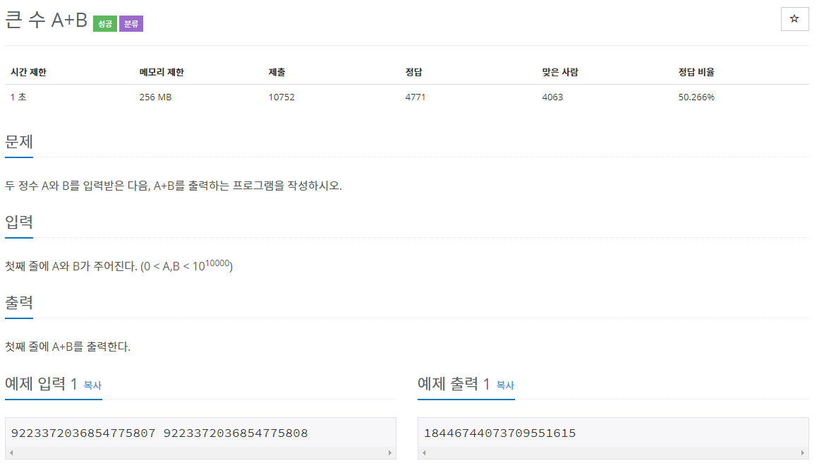 자바는 큰수를 BigInteger 클래스로 정의 하였습니다.