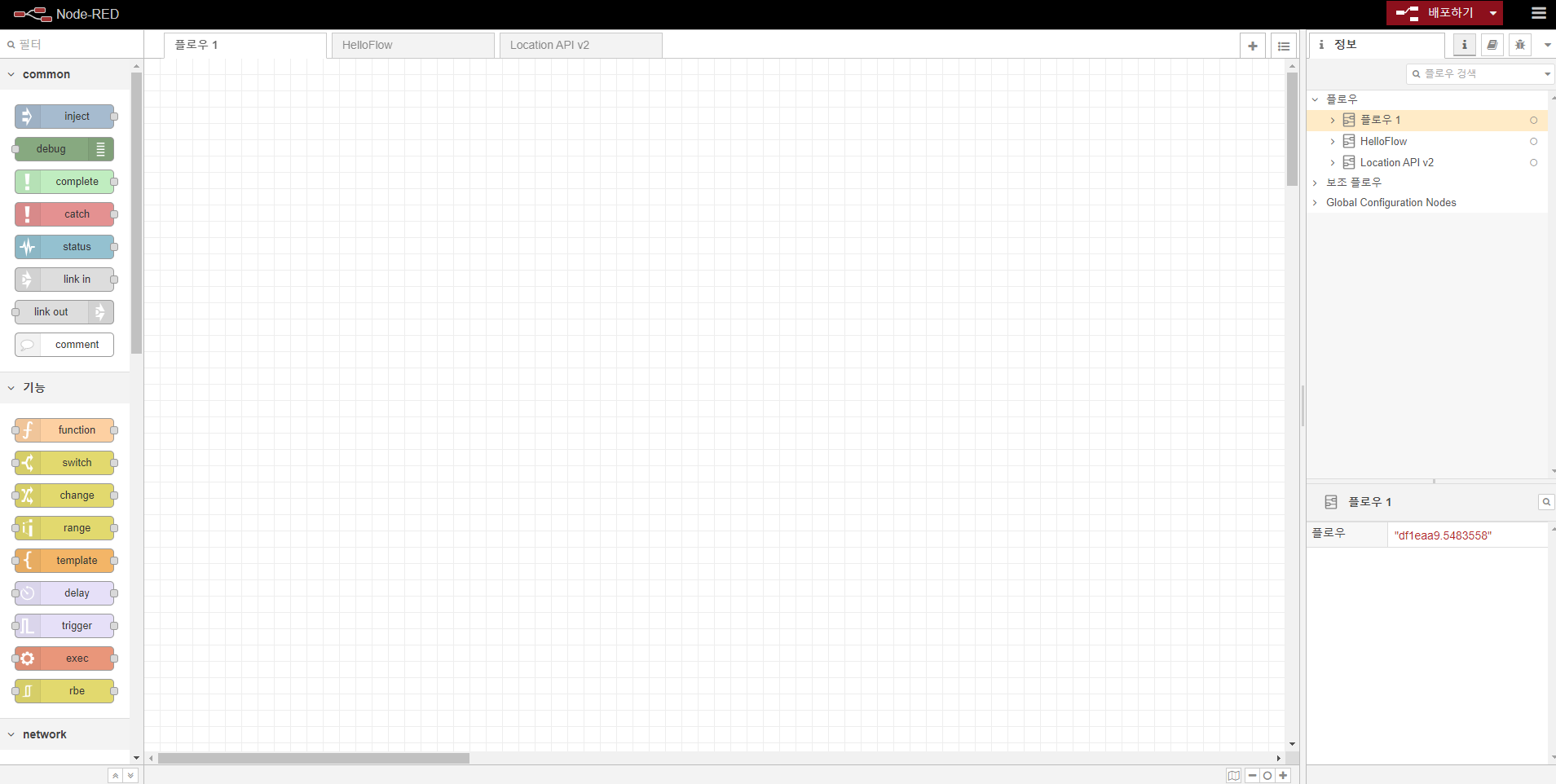 서버가 http://127.0.0.1:1880/ 로 실행되고 있다는 설명입니다. 접속을 하면 짜란~!