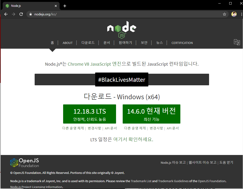 그 다음에 cmd 창을 열고 node --version && npm --version 명령어를 실행하여 설치가 되었는지 확인해주세요.