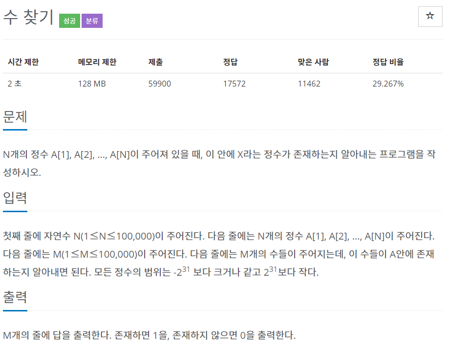 이진검색을 이용하여 문제를 풀려고 하였으며 잘하시는분들 소스를 보니 HashSet을 이용하여 풀어서 저도 차후에 보강해보겠습니다.
