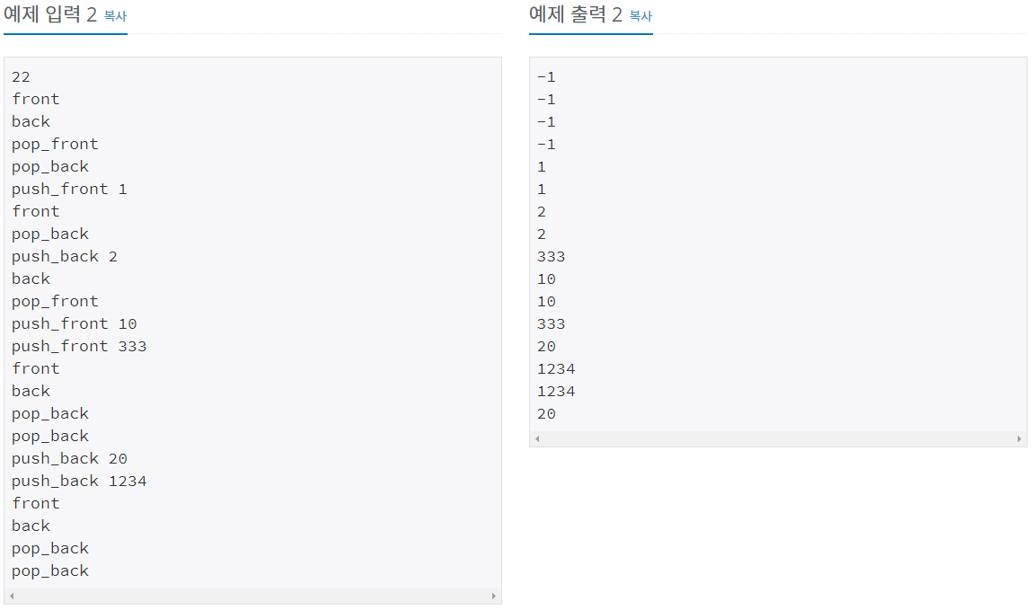 case "back": //덱의 가장 뒤에 있는 정수를 출력한다. 만약 덱에 들어있는 정수가 없는 경우에는 -1을 출력한다.