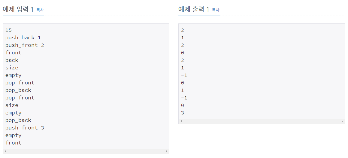 case "front": //덱의 가장 앞에 있는 정수를 출력한다. 만약 덱에 들어있는 정수가 없는 경우에는 -1을 출력한다.