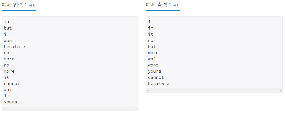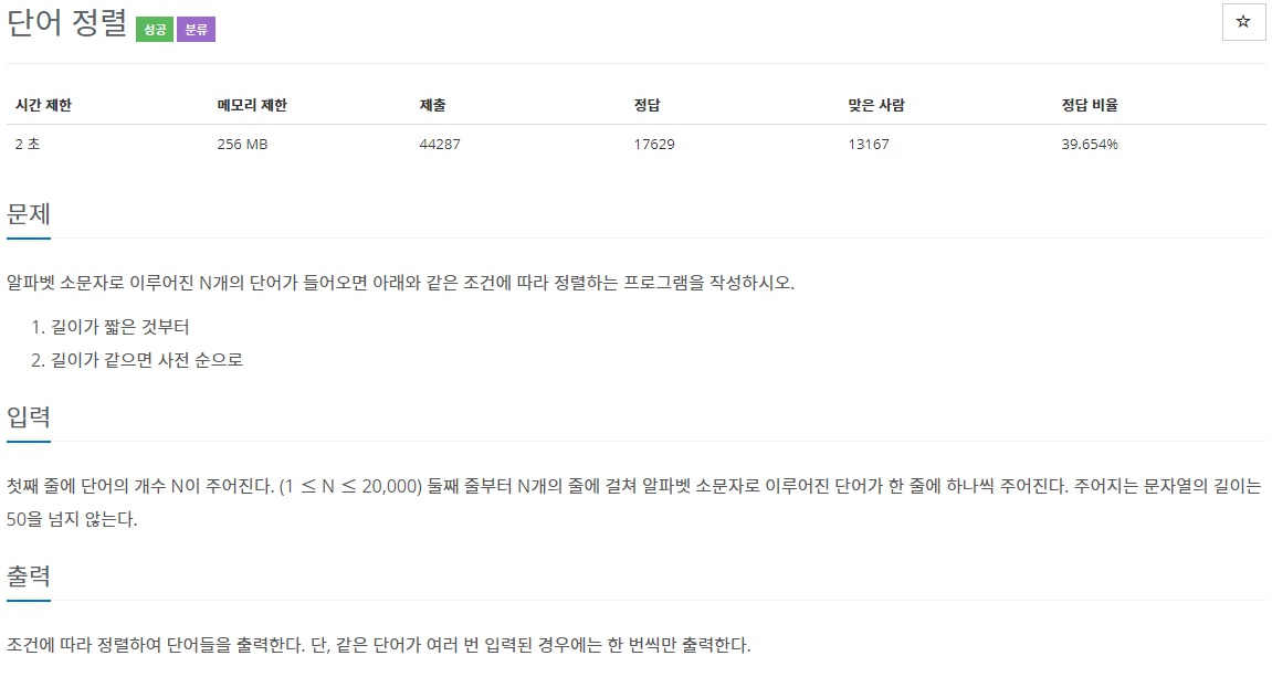 자바 set으로 단어 중복을 거르고 Comparable 인터페이스의 compareTo() 메소드를 람다식으로 구현하여 문제를 풀었습니다.