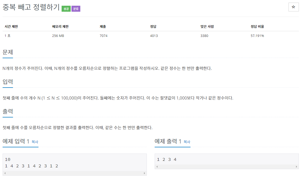카운팅정렬 기법을 활용하여 중복인지 아닌지 계산하지 않고 정렬하였습니다.