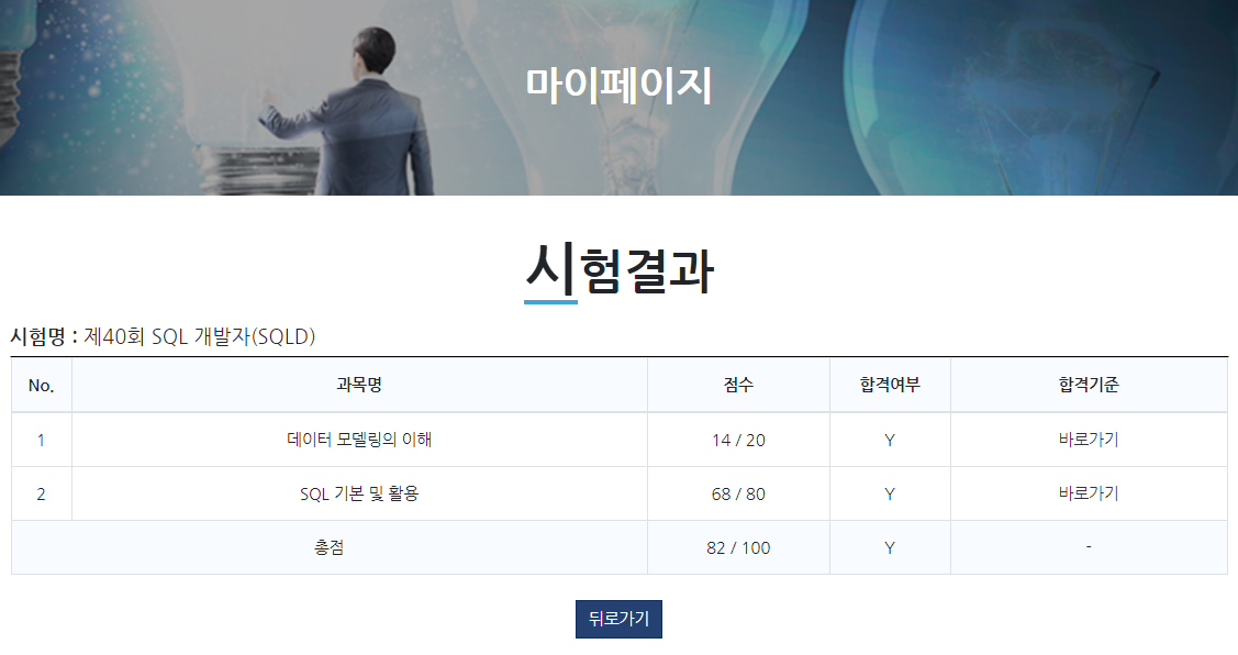 3월에 SQLD 자격증을 시험을 보고 왔습니다. 오늘 4월 16일이 시험결과 조회날이였는데요.