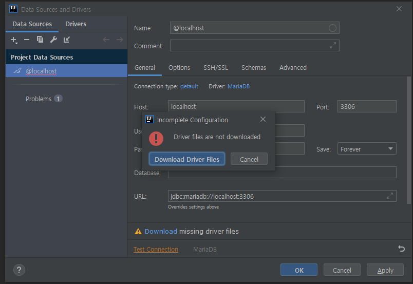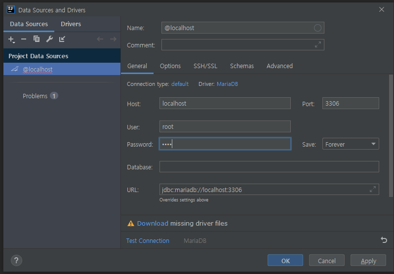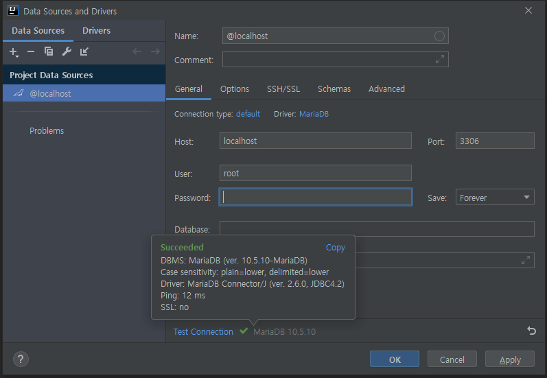 그 후에 Test Connetion을 누르면 접속 성공! -> Apply -> OK 눌러주세요