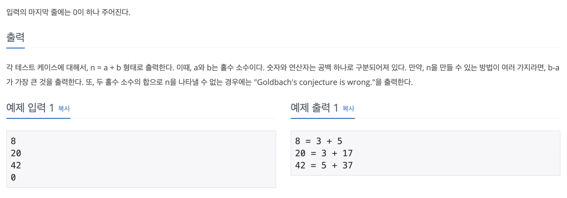 - testCase = i +(testCase-i) 를 이용하여 i값을 3 부터 +2씩하여 반복하여 i값과 (testCase-i) 가 true일때 출력합니다.